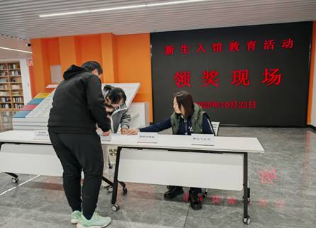入馆教育作为新生入学后的“第一堂信息素养课”,采用了线上答题与线下实地探索相结合的模式。图书馆通过系统后台数据统计,共设置了五个奖项,评选出最佳闯关奖、最佳完成奖、幸运之星奖,南湖馆和北湖馆入馆前十名奖。活动现场为获奖同学颁发奖品。