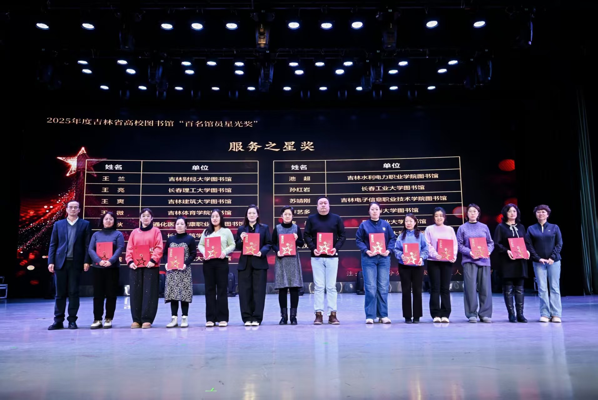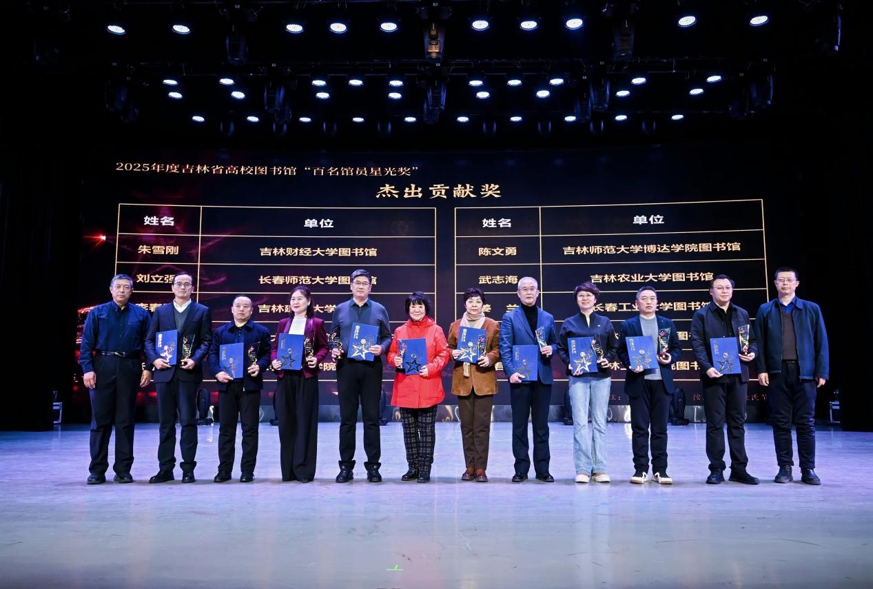 “百名馆员星光奖”设立旨在展现新时代图书馆员的精神风貌与职业担当,通过多维度评审机制,表彰在资源建设、读者服务、文化传承、学术研究等领域有突出贡献的行业标兵。我校图书馆馆长姜兰获得“杰出贡献奖”,技术保障部主任吴天昊获得“AI领航奖”,读者服务部主任张红兵、流通阅览部主任孙红岩获得“服务之星奖”。