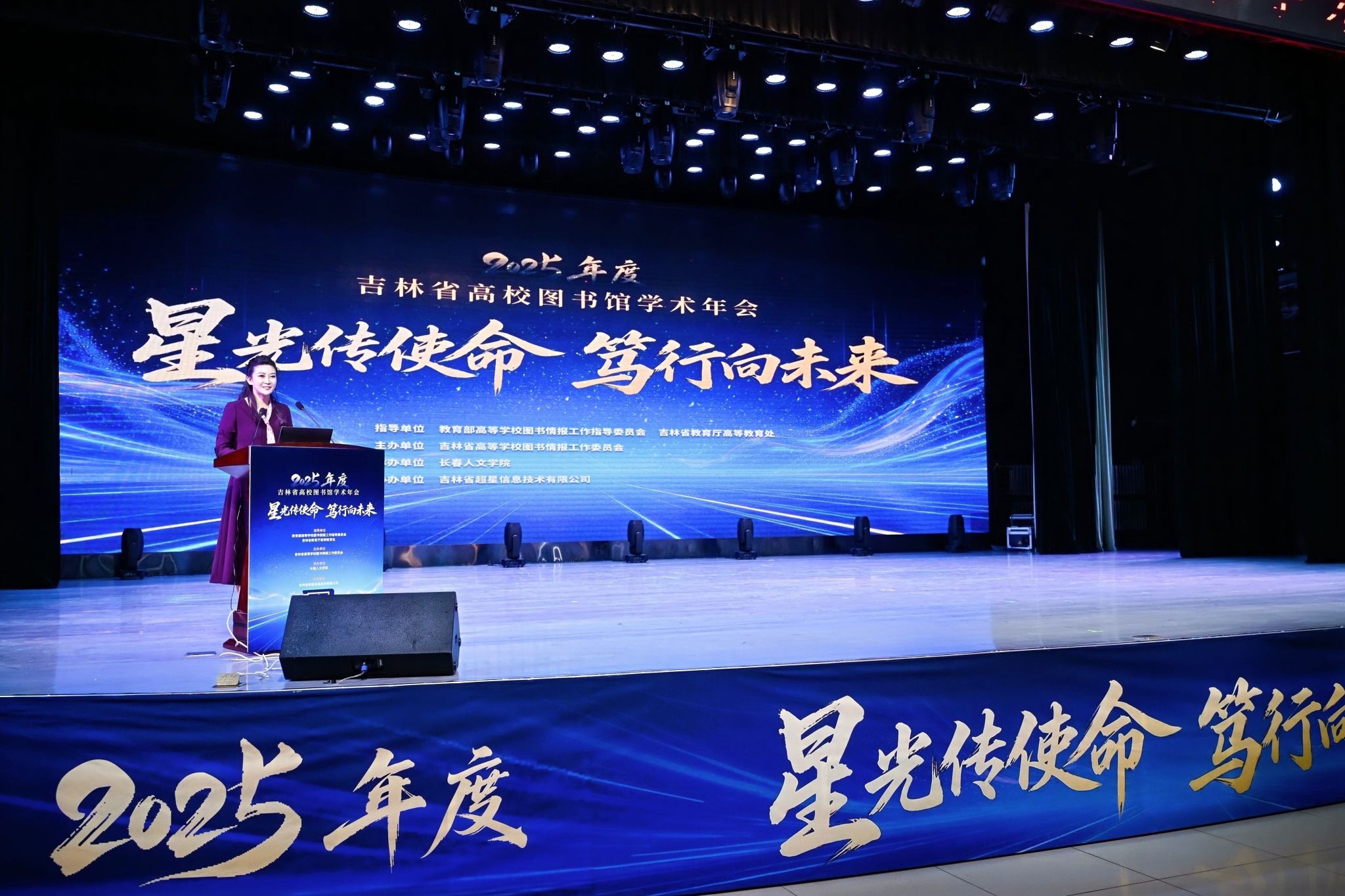 图书馆网讯(通讯员 张红兵)2026年1月5日,由吉林省高等学校图书情报工作委员会主办、长春人文学院承办、吉林省超星信息技术有限公司协办的“2025年度吉林省高校图书馆学术年会”在长春人文学院隆重举行。本次年会以“星光传使命,笃行向未来”为主题,聚焦“十五五”时期高校图书馆的责任与使命,围绕AI赋能、智慧服务、资源共建共享等热点议题展开深入交流。年会表彰了2025年吉林省“AI+信息素养大赛”优秀组织单位及“百名馆员星光奖”获得者,彰显全省图书馆人积极进取、开拓创新的风貌。