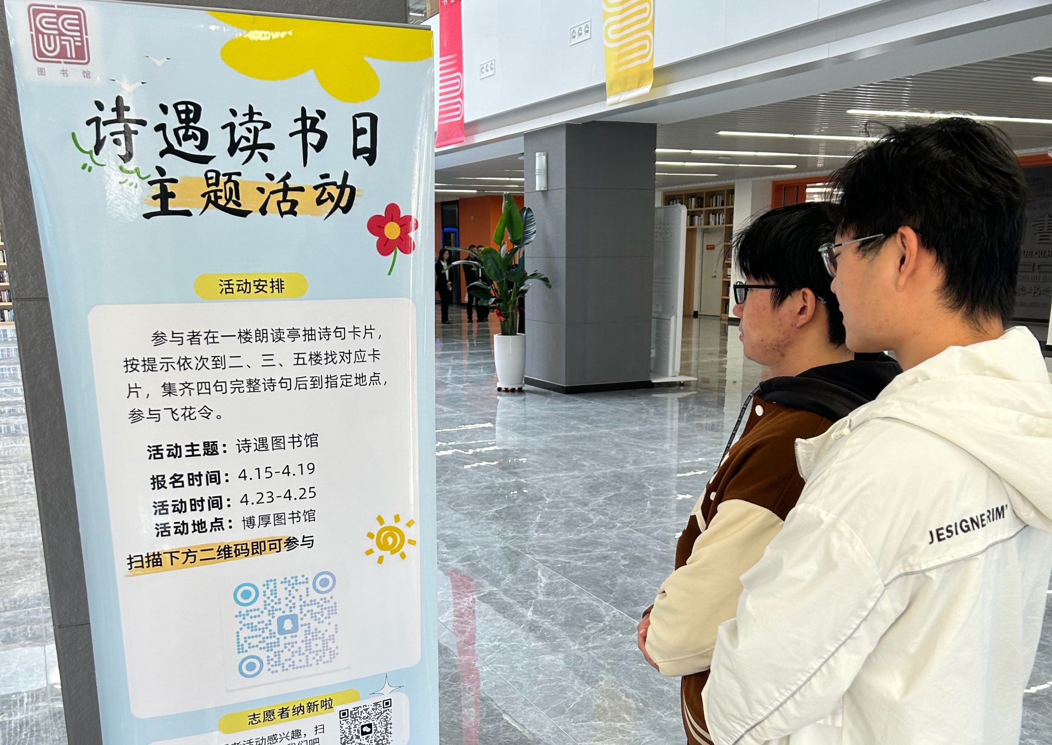 由图书馆自管会组织,面向全校学生开展“诗遇读书日——拼诗寻宝挑战赛”,趣味寻宝与拼诗解谜活动正式开启。大家在探索图书馆布局的过程中,感受中华诗词的魅力,在趣味互动里亲近经典、传承文化,让阅读变得生动又有趣。
