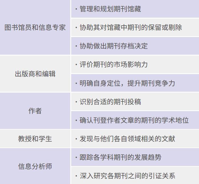 通过对参考文献的标引和统计,JCR 可以在期刊层面衡量某项研究的影响力,显示出引用和被引期刊之间的相互关系。